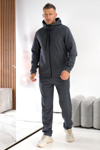 Стильний спортивний костюм-двійка – чудова річ в чоловічому гардеробі. Кофта на блискавці з капюшоном і шнурками. Є дві бокові кишені, крій класичний і мінімалістичний.