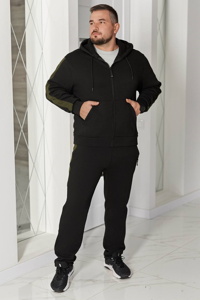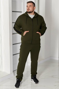Худі прямого крою з комфортним капюшоном на шнурках та центральною застібкою-блискавкою. Модель доповнена двома зручними кишенями-кенгуру. Низ виробу та манжети рукавів оформлені широкими трикотажними манжетами. Штани з комфортною посадкою мають еластичний пояс зі шнурком для індивідуального регулювання. Передбачено три кишені: дві бічні на блискавках та одна задня. Низ штанів — прямий.