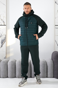 Теплий, багатофункціональний чоловічий костюм. Кофта є найцікавішим елементом, оскільки вона комбінована. Середина моделі має стьобаний (прошитий) вигляд, що імітує утеплювач або тонку стьобану жилетку, вшиту в кофту. Це надає додаткового тепла та фактурності.