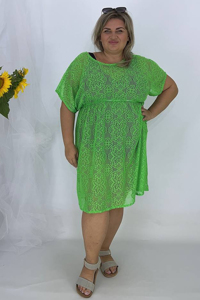 Довжина туніки – вище колін. Модель виглядає легкою, яскравою та ідеально підходить для пляжного відпочинку або літніх прогулянок.