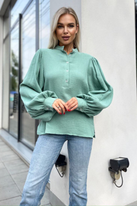 Вишукана блузка із комірцем-стійкою на п'ять функціональних ґудзиків. Легкий об'ємний рукав на манжеті. Муслін має переваги в легкості, практичності та дуже гарному зовнішньому вигляді.