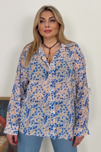 Вільний фасон, по боках розрізи, спереді планка з гудзиками, довгий рукав на манжеті. Поєднується з спідницею "Шанс", і можна утворити костюм. На фото також блуза представлена з брюками "Марая". Пояс в комплект не входить.