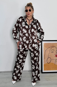 До комплекту входять: сорочка, яка застібається на ґудзики, довжина рукава регулюється кулісою. Брюки моделі палаццо, у поясі широка еластична резинка.