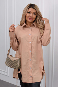 Модель має розрізи з боків. У нижній частині розрізів, біля подолу, є декоративні елементи, через які пропущено зав'язки. Ці елементи надають сорочці сучасного, кежуал-спортивного акценту. Стильна, комфортна та сучасна оверсайз сорочка підійде для повсякденних образів.