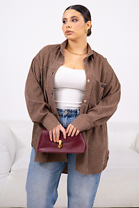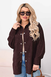 Стильна подовжена сорочка, виконана з м'якого мікровельвету. Тканина має приємну на дотик фактуру в дрібну смужку, що створює свіжий і дорогий вигляд.