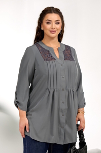 Стильна сорочка-туніка вільного крою для пишної фігури. Вставки з гипюру в тон виробу, прекрасно підкреслять Ваш вишуканий смак.