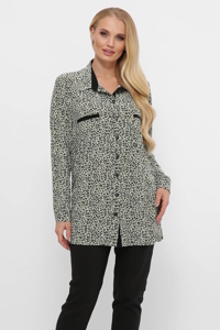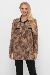 Стильна жіноча сорочка прямого силуету доповнена оригінальним принтом.