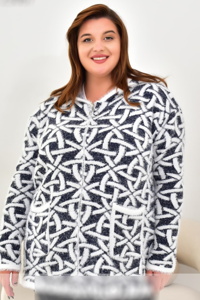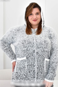 Модель має прямий силует із капюшоном, застібається на блискавку та доповнена зручними накладними кишенями спереду. Контрастна обробка по краях і кишенях надає виробу стильного акценту. Такий кардиган поєднує комфорт, тепло й сучасний вигляд — ідеальний варіант для щоденного носіння.