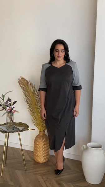 Трикотажне плаття в діловому стилі, лаконічний дизайн, прямий силует.