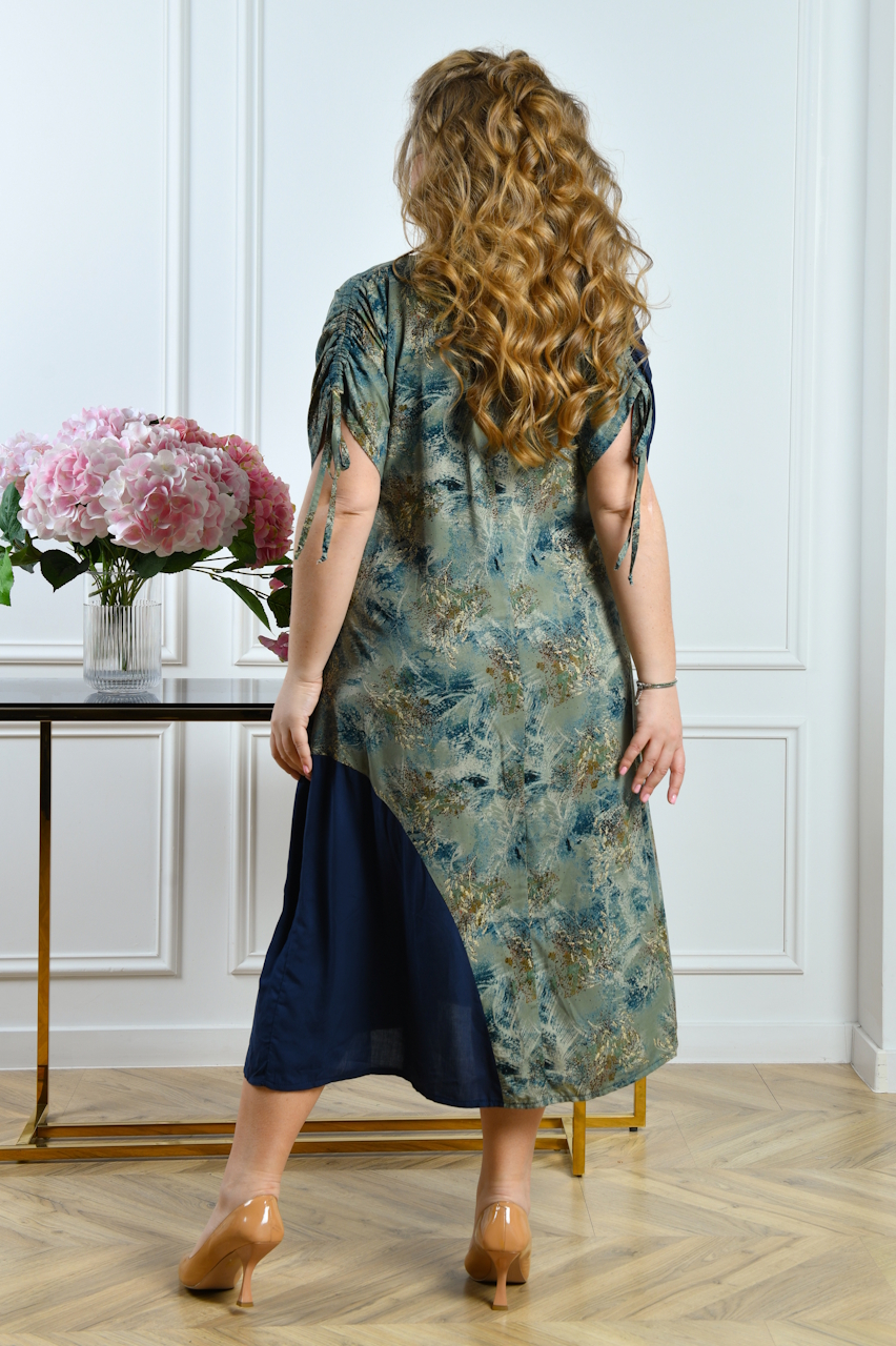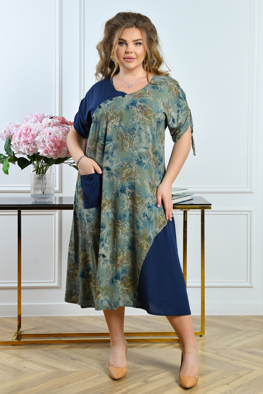 Красиве повсякденне плаття з натурального матеріалу, комбіноване вставками.
