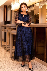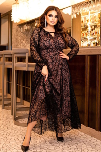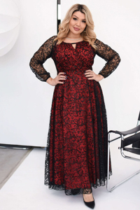 Розкішна вечірня сукня – ідеальний варіант для створення святкових образів. Модель виготовлена з шикарного матеріалу – сітка флок. Виріз горловини округлий, пікантності додає оригінальний трикутний розріз на грудях.