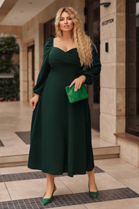 Оригінальна і дуже жіночна модель плаття довжиною міді приталеного силуету з вільною спідницею.