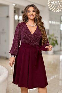 Елегантне жіноче плаття просто створене для новорічних свят. Перед сукні з імітацією запаху. До сукні додається знімний пояс із основної тканини.