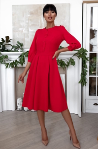 Яскрава сукня міді в романтичному стилі додасть силуету вашої фігури м'якості і природності.