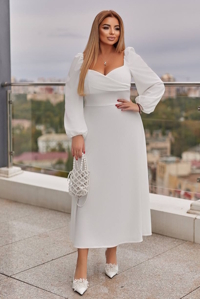 Оригінальна і дуже жіночна модель плаття довжиною міді приталеного силуету з вільною спідницею.