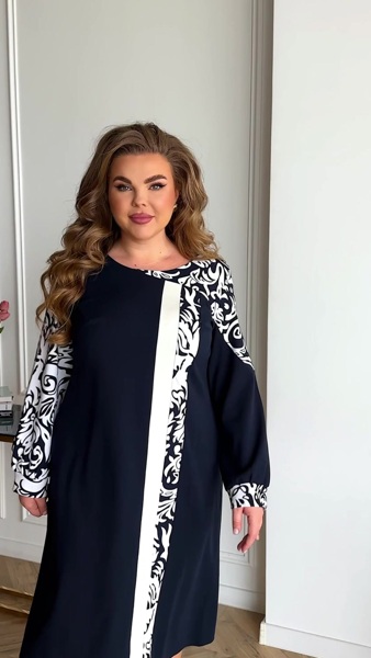 Святкове красиве плаття напівприталеного силуету, оформлене цікавими вставками, що вигідно видовжують силует.