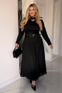 Шифон створює ніжний струмуючий ефект, а французький трикотаж робить посадку комфортною та приємною до тіла. Підходить для plus size фігури, добре сідає та не обтягує.