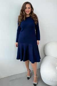 Силует приталений, низ плаття виконаний у вигляді волану, що завжди актуально. Довгий зручний рукав, округла акуратна горловина.