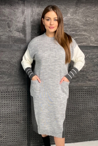 Тепле в'язане плаття з акуратною округлою горловиною та приспущеним плечем.