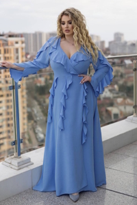 Ідеальна посадка по фігурі. Спідниця напівсонце, не повнить, гарно спадає від талії. Плаття прикрашене рюшами, що додає грайливості та шарму. Великий вибір кольорів.