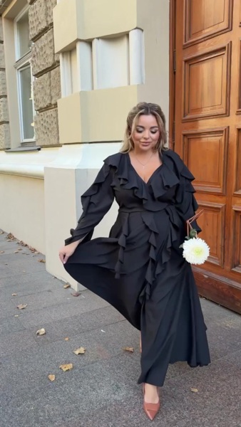 Ідеальна посадка по фігурі. Спідниця напівсонце, не повнить, гарно спадає від талії. Плаття прикрашене рюшами, що додає грайливості та шарму. Великий вибір кольорів.