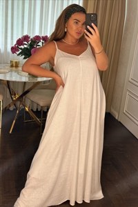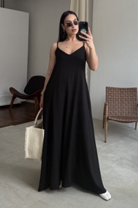 Довжина максі, бретелі, що регулюються, кишені в бічних швах.