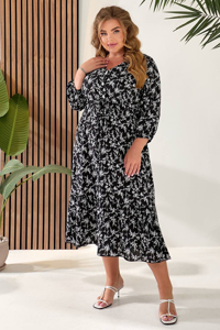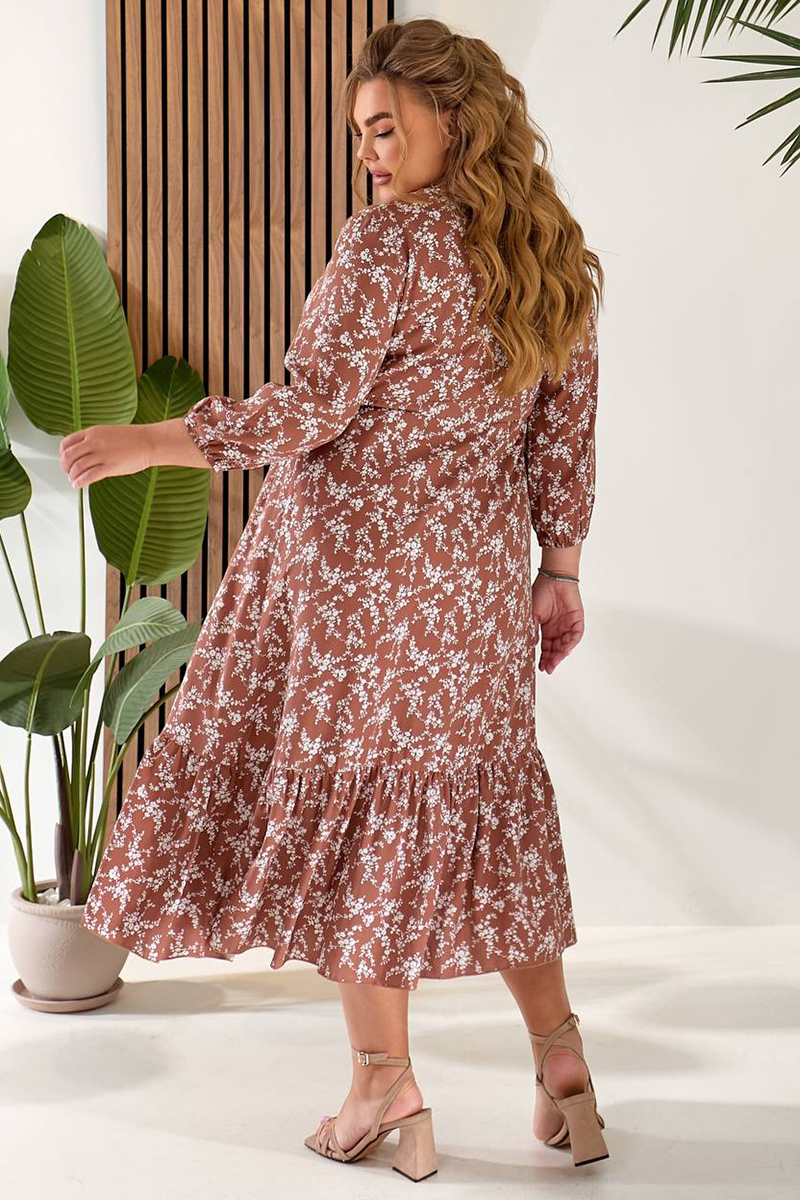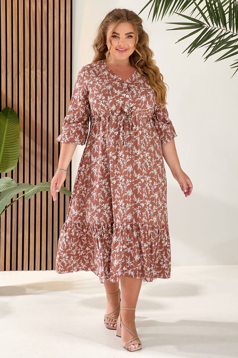 Романтична сукня довжини міді. Ніжна та неймовірно комфортна модель, прикрашена актуальним квітковим візерунком. Виріб пошитий із легкого та дихаючого штапелю, який гарно спадає по фігурі та дарує відчуття прохолоди у теплі дні.