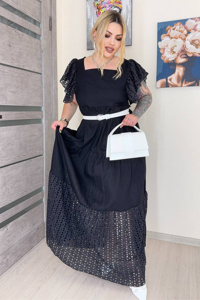 Верх має квадратний виріз і короткі рукави-ліхтарики з перфорованої тканини. Сукня дуже жіночна та ідеально підходить для літньої прогулянки або відпочинку.