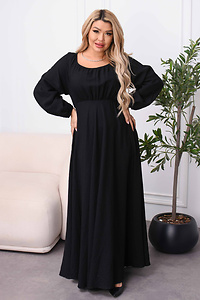 Лінія талії виділена м'якою резинкою, яка гармонійно підкреслює жіночні пропорції. Від пояса вниз плавно спускається широка спідниця, що вільно спадає до самої підлоги. Ця сукня стане чудовою основою для романтичних чи повсякденних виходів. Вона ідеально поєднується з босоніжками на низькому ходу та легкими аксесуарами.