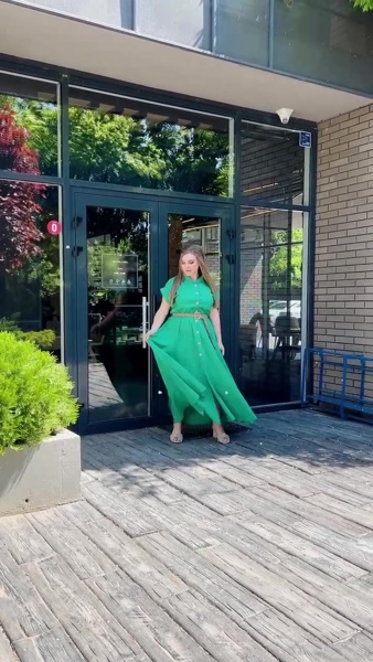 Деталі: довге плаття на гудзиках по всій довжині, рукав японка, талія відрізна на резинці, в бокових швах кишені. Пояс в комплекті.