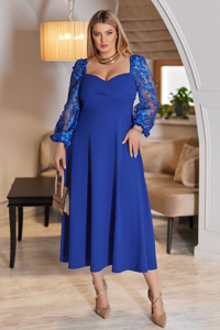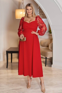 Оригінальна і дуже жіночна модель плаття довжиною міді приталеного силуету з вільною спідницею.