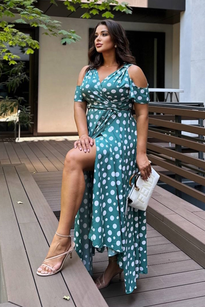 Деталі: завищена талія, спідниця призібрана та розкльошена донизу. Понизу рукавів та спідниці біла широка бейка. Нижче талії потайні кишені.