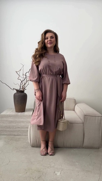 Основа сукні однотонна. Рукава 7/8 з гумкою. Відрізна талія із гумкою, яку можна підкреслити поясом. Текстильний пояс входить в комплект.