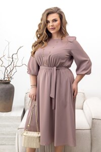 Основа сукні однотонна. Рукава 7/8 з гумкою. Відрізна талія із гумкою, яку можна підкреслити поясом. Текстильний пояс входить в комплект.