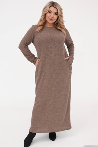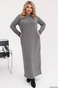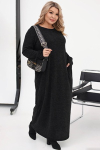 Довга сукня прямого крою з довгими рукавами. Вона виконана з м’якого трикотажного матеріалу. Силует вільний, не обмежує рухів, завдяки чому підходить для щоденного носіння. Має зручні кишені з боків.