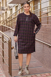 Сукня вільного крою з акцентною застібкою-блискавкою на грудях. Рукави прикрашені декоративною стрічкою, у бічних швах розташовані зручні кишені, а по боках – стильні розрізи.
