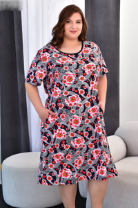 Сукня вільного силуету — ідеальний варіант для щоденних образів. Короткий рукав і округлий виріз додають виробу лаконічності, а універсальна довжина робить його практичним у носінні. Модель доповнена зручними кишенями.