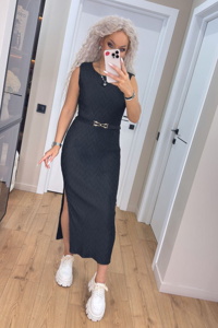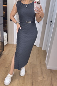 Елегантний дизайн вдало підкреслює фігуру, а пояс у комплекті формує спокусливий силует. Бічний розріз додає свободи рухам, роблячи модель водночас стильною та комфортною. Легка тканина майже не відчувається на тілі.
