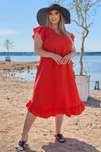 Яскрава лляна сукня — вдале поєднання стилю, легкості та комфорту. Вільний крій дарує свободу рухів, дихаюча тканина не просвічує та приємна до тіла, а рукави-крильця додають ніжності силуету. Бічні кишені підкреслюють практичність моделі, а оздоблений воланом низ надає образу грайливої жіночності. Ця сукня — ідеальний вибір для створення ефектного й елегантного луку на будь-який випадок.