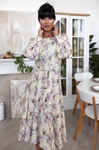Дуже витончена та ніжна сукня, що здатна створювати легкі образи та надавати Вам ще більшого шарму. Даний виріб вирізняється ніжним принтом ( квітковим) та однотонною основою сукні.