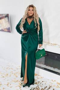 V-подібний виріз, на талії деоративний перекрут, спереді високий розріз.