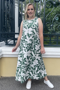 Тканина деже приємна на дотик, не парить, в ексклюзивному принті. Довжина максі, по боках високі розрізи.