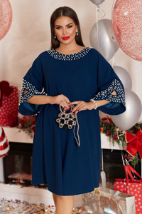 Округлий виріз горловини підкреслює шию. Горловина та низ рукавів декоровані красивими перлинами, що додає сукні вишуканості. Перлини зроблені на спеціальному обладнанні, дуже добре тримаються. Це універсальний вибір, який можна стилізувати з різними аксесуарами або верхнім одягом, залежно від ситуації.
