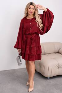 Романтичне коротке плаття, виконана з легкої, трохи блискучої тканини. Вільний фасон, з акцентом на талії завдяки поясу-стрічці. Довгі рукави, широкі, вільно спадають, надаючи образу романтичності та легкості.