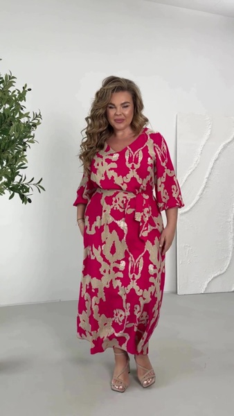 Плаття суцільного крою, рукав 3/4 на резинці, неглибокий V-подібний виріз горловини - все це елегантно підкреслює вашу жіночність, а ніжна тканина гарно струмує, створюючи ефект невагомості. Пояс у комплекті, підкреслює талію. Спинка прикрашена витонченим швом уздовж усієї довжини. Ця сукня стане чудовим варіантом для прогулянок, зустрічей або особливих моментів, коли хочеться виглядати яскраво та відчувати легкість. Пояс входить в комплект.
