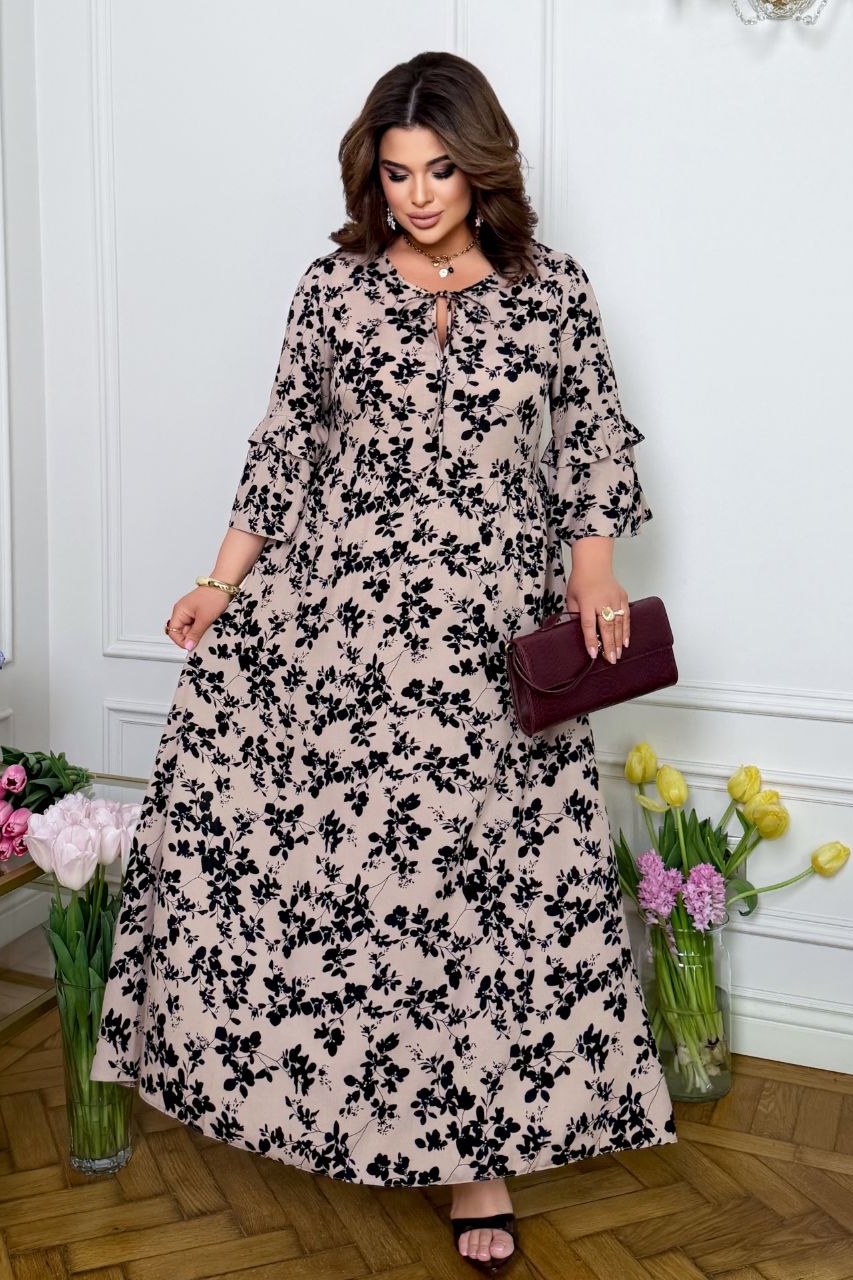 Красиве вільне плаття максі з натурального матеріалу з дрібним квітковим принтом.