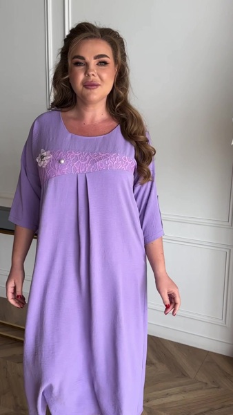 Талія завищена, вставка на грудях з зустірною складою донизу, що і формує вільний силует. Рукав 3/4, спущені лінія пройми. Брошка в комплекті. Будь ласка, зверніть увагу: вигляд брошки та фурнітури може злегка змінюватися відповідно до актуальних поставок, зберігаючи при цьому якість та загальний стиль виробу.