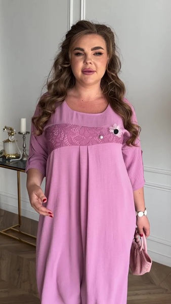 Талія завищена, вставка на грудях з зустірною складою донизу, що і формує вільний силует. Рукав 3/4, спущені лінія пройми. Брошка в комплекті. Будь ласка, зверніть увагу: вигляд брошки та фурнітури може злегка змінюватися відповідно до актуальних поставок, зберігаючи при цьому якість та загальний стиль виробу.