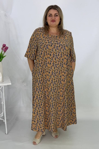 Літнє довге плаття вільного А-силуету з відрізною кокеткою і округлою горловиною.