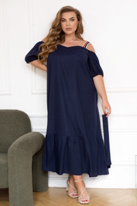 Виріз з відкритими плечима додає образу романтичності, а рукави на резинках ніжно фіксуються, не перетискаючи. Талія підкреслена тонким паском з тієї ж тканини, тож можна регулювати посадку за бажанням. Низ ви робу з воланом, що красиво лягає при русі. Плаття ідеально підходить як для прогулянок містом, так і для легких літніх вечорів.